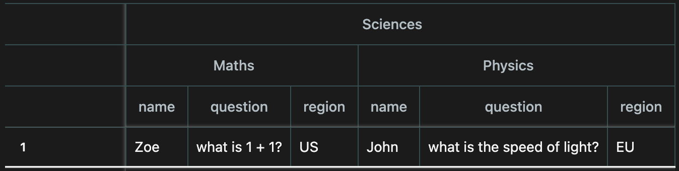 Note that the Log instances will still show the full field paths, even when inside a column context.